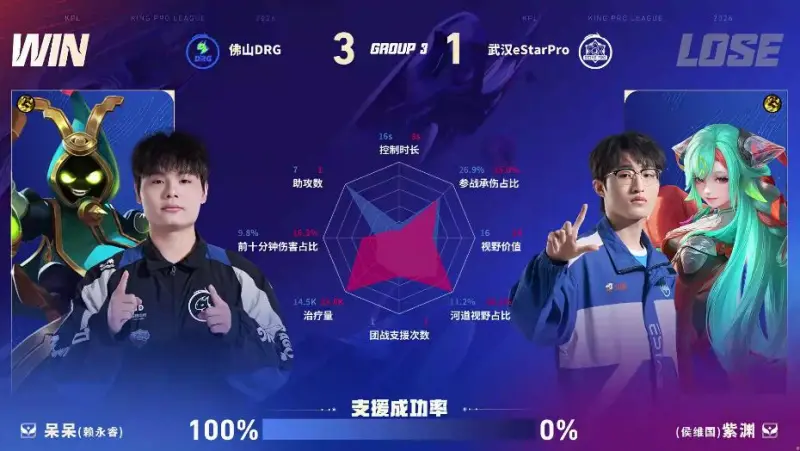 DRG/ES第四局数据图:梦岚公孙离零死亡且多项数据拉满